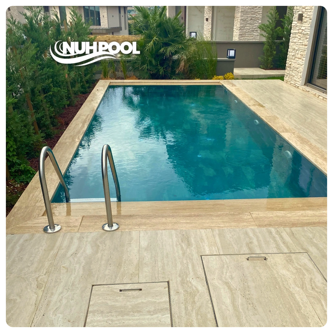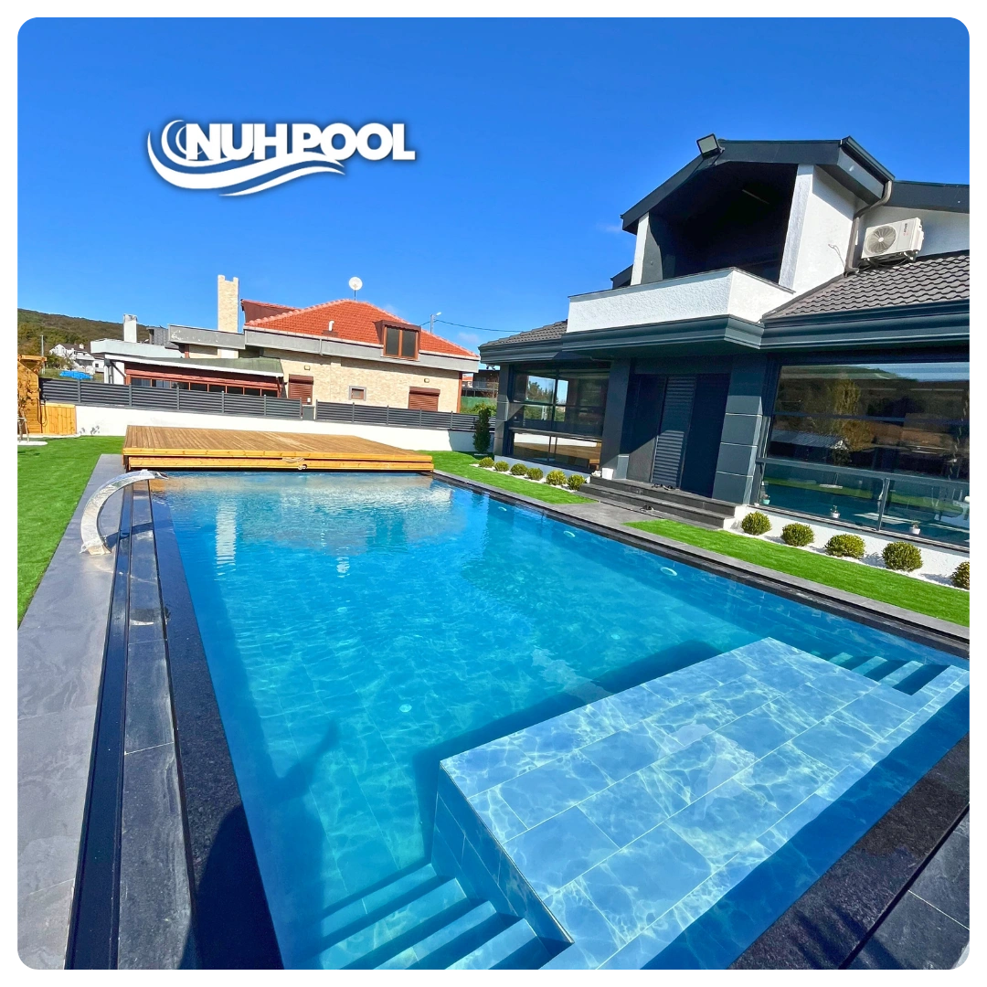 Hazır havuz sistemlerimizle zamandan ve maliyetten tasarruf ederken, estetik ve fonksiyonelliği bir arada sunuyoruz. Nuh Pool Havuz Ekipmanları ve Kimyasalları olarak, dayanıklı malzemelerle üretilmiş, uzun ömürlü ve bakım kolaylığı sağlayan havuz çözümlerimizle size özel projeler geliştiriyoruz. İster villa, site, otel ya da sosyal tesisler için olsun, her mekâna uygun tasarım alternatiflerimizle fark yaratıyoruz. Uygun fiyat politikamız ve profesyonel destek ekibimizle, kurulumdan kimyasal dengesine kadar her aşamada yanınızdayız. Hayalinizdeki havuza kısa sürede kavuşmak ve kaliteli bir hizmet deneyimi yaşamak için bizimle iletişime geçin!